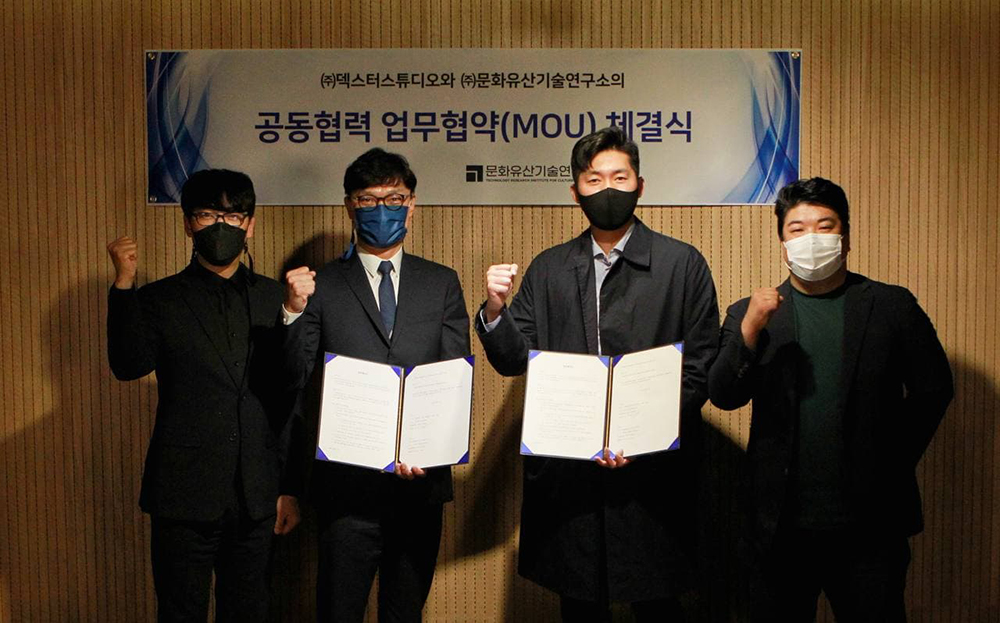 덱스터스튜디오는 11일 오후 서울 상암동 본사에서 문화유산기술연구소와 실감 콘텐츠 공동 연구 및 제작을 위한 MOU를 체결했다고 12일 밝혔다.