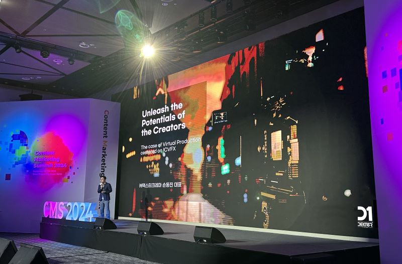 ▲ 덱스터크레마 손동진 대표가 CMS 2024에서 ‘버추얼 프로덕션: 차세대 마케팅의 새로운 장을 열다’를 주제로 발표했다.