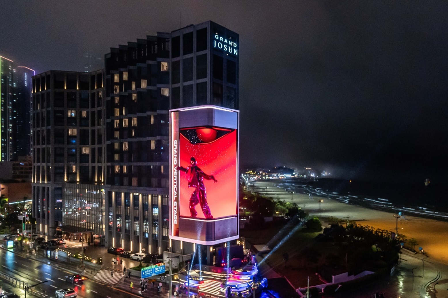 ⓒ Dexter Krema DEXTER STUDIOS(股票代码:206560)及集团公司全面参与打造的超大型DOOH(数字户外广告)“Grand Josun Media”已在海云台户外广告自由展示区“海云台广场”正式启动。 由SHINSEGAE PROPERTY和JOSUN HOTELS & RESORTS共同推进的“Grand Josun Media”是海云台区内首个DOOH,被指定为第二期户外广告自由展示区,安装在GRAND JOSUN BUSAN酒店的外墙上。作为一座宽25米、高31米、面积达788平方米的巨型垂直媒体,作为令人联想到纽约时代广场的海云台广场的起点备受关注。 DEXTER集团与负责Grand Josun Media策划和运营的SHINSEGAE PROPERTY合作,在内容制作上展现了差异化的能力。特别是,DEXTER Krema、DEXTER实感内容本部和VP本部共同负责了电子屏内容的制作、播放以及启动活动的整体运营,展示了公司在DOOH领域的媒体艺术技术、创意和策划能力等综合竞争力。 DEXTER的子公司、AI数字营销专业企业DEXTER Krema不仅限于户外巨型屏幕视频内容的策划和制作,更全面负责了旨在将Grand Josun Media打造成海云台代表性地标的启动推广活动,并策划了一场以观众为核心,提供融合现场表演与媒体的沉浸式空间体验的发布会。 Grand Josun Media的首个电子屏内容由DEXTER的实感内容本部负责制作。曾制作过韩国内容振兴院的《光化时代》、国立中央博物馆的《平生图》等内容的DEXTER实感内容本部,制作了启动媒体秀视频“GRAND VERTICAL STAGE”和主媒体秀视频“LunaSol”。 启动媒体秀视频“GRAND VERTICAL STAGE”营造出一种仿佛在建筑物外墙上搭建了垂直舞台的空间感,提供了媒体与线下舞台融合的全新视听娱乐体验。通过3D变形 (Anamorphic) 效果为世界排名第一的舞团Just Jerk的表演赋予了实体感,同时运用海云台的海洋、沙滩、冬柏花等3D元素,最大限度地增强了舞台效果,表现出表演者充满活力的动作和立体感。 “GRAND VERTICAL STAGE”视频的实景拍摄在DEXTER的虚拟制作工作室“D1”进行,以确保3D背景和实景人物能够高度融合。这增强了线下舞台上的EDM DJ表演与媒体上Just Jerk舞蹈表演之间的联动性。 由APOLLON IMMERSIVE WORKS导演、DEXTER实感内容本部制作的主媒体秀视频“LunaSol”以太阳和月亮为主题,通过变形设计和针对垂直媒体形态优化的垂直运动及动画表现,展现了富有节奏感的自然轨迹。制作的8K分辨率视频通过校正观众位置造成的视差,优化了摄像机映射,确保无论从海云台海滩还是龟南路任何角度观看,都能呈现无失真的完整立体感。它传递了用巨大的太阳和月亮温暖的光芒,为所有人的日常生活带来欢乐和喜悦的信息。 主导此次启动活动的DEXTER Krema孙东振代表表示:“作为非首都圈的首个超大型DOOH项目,我们策划此次活动旨在将Grand Chosun Media打造为海云台的新地标。以此次活动为起点,通过DEXTER集团间的协同效应,我们将积极推动程序化DOOH、XR(扩展现实)演出、虚拟制作等新媒体业务。”